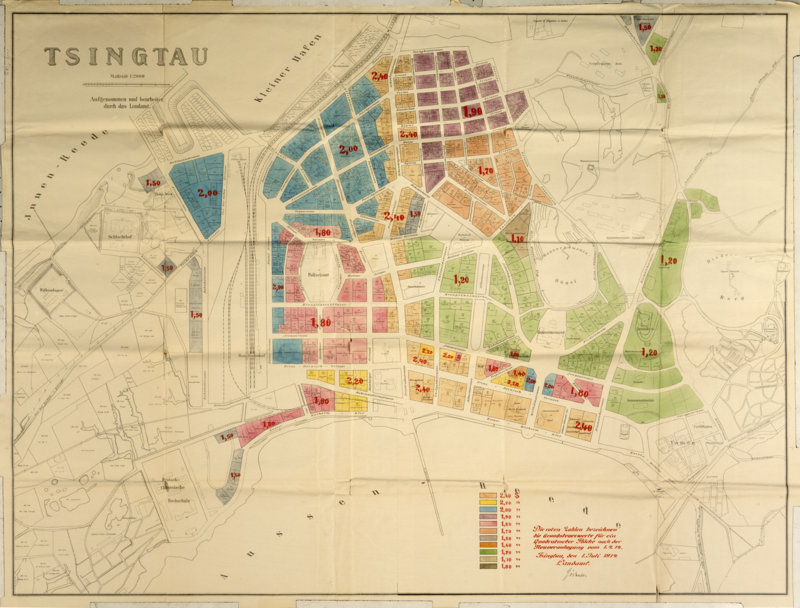 Bodenwertzonen in der deutschen Kolonie Qingdao (Karte zur Verfügung gestellt von Prof. Dr. W. Matzat)